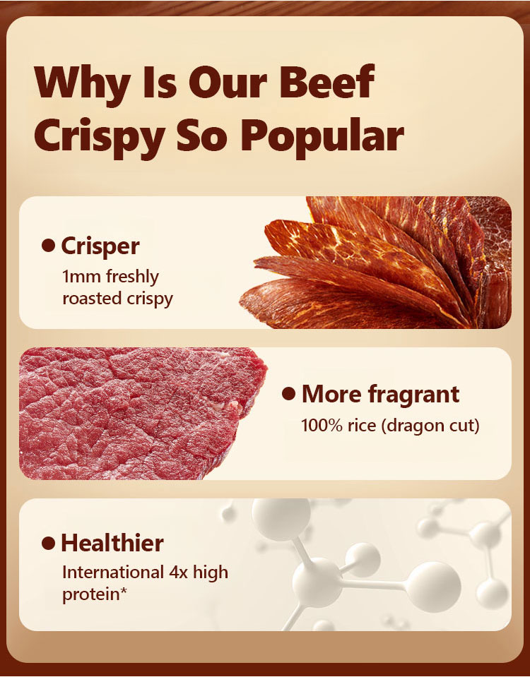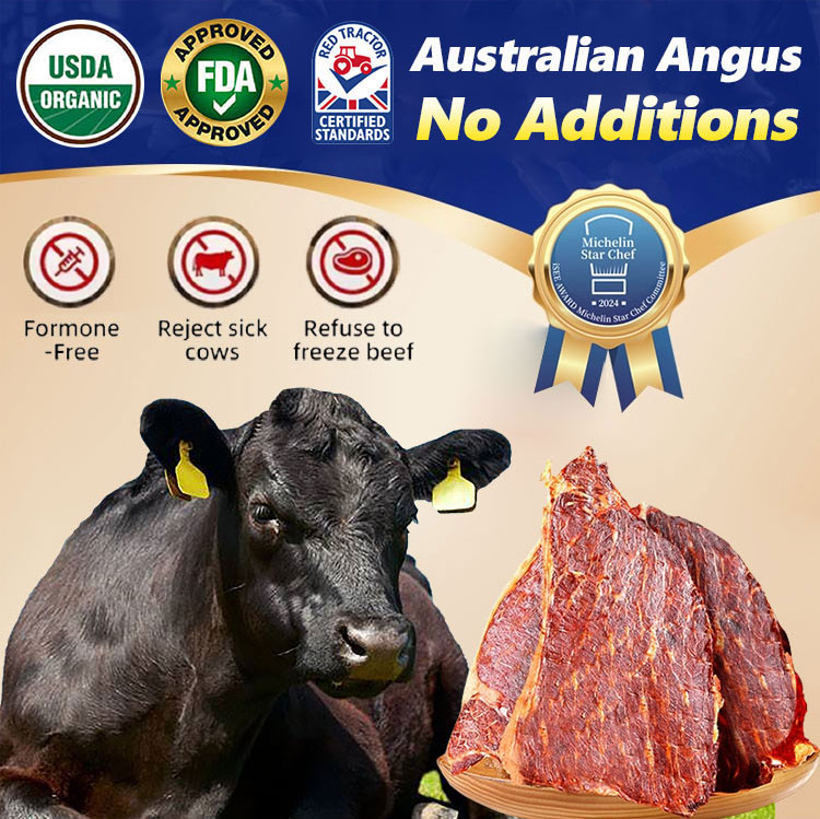 Exclusive direct supply, delivered to your door within 24 hours of ordering! Selected Angus grain-fed beef, 🥩whole cut, slow-roasted, 1mm thinly sliced, as thin as a cicada's wing. The aroma explodes with every bite, becoming more flavorful with each chew. It's easy to chew and suitable for all ages. Every 100 grams of protein is equivalent to 8 cups of milk.🥛