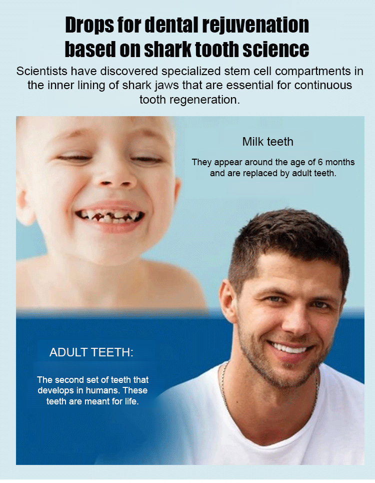 Just one drop, for stronger teeth! Say goodbye to weak teeth and enjoy hot, cold, sweet, and sour foods without worry. This tooth regeneration serum repairs damaged enamel.