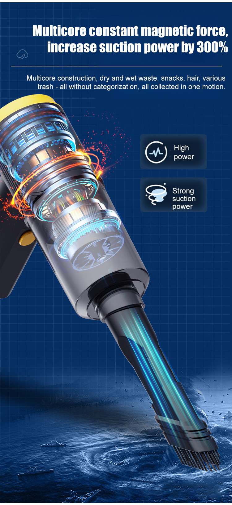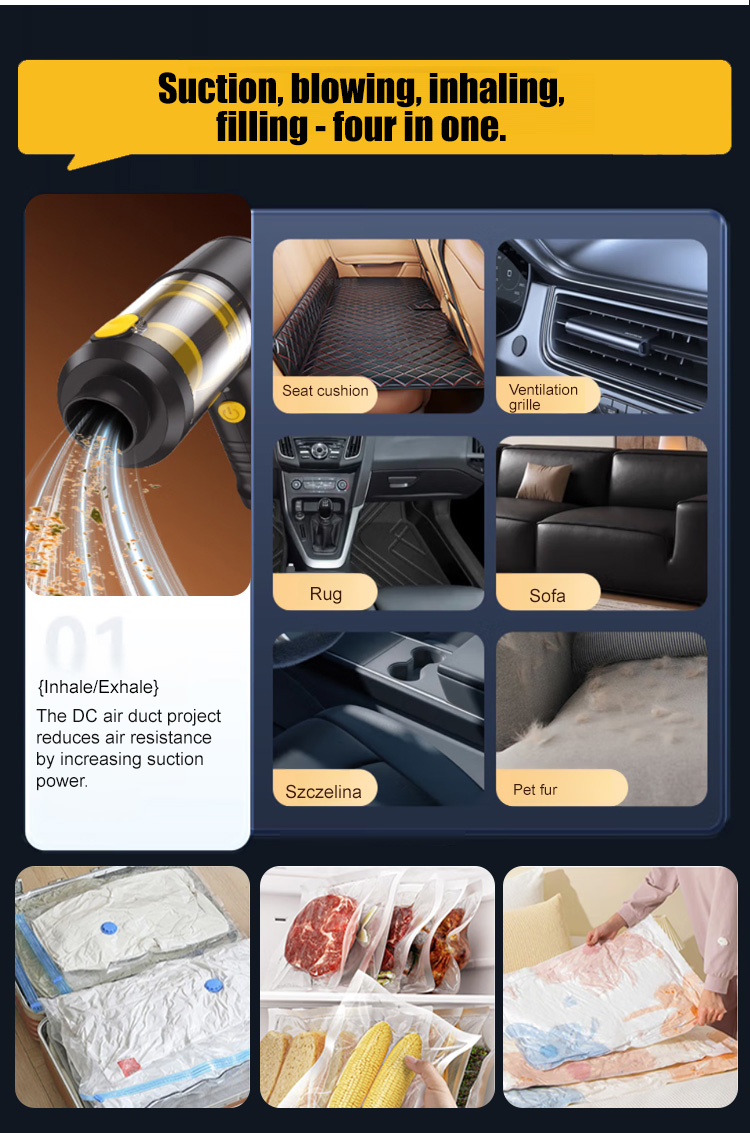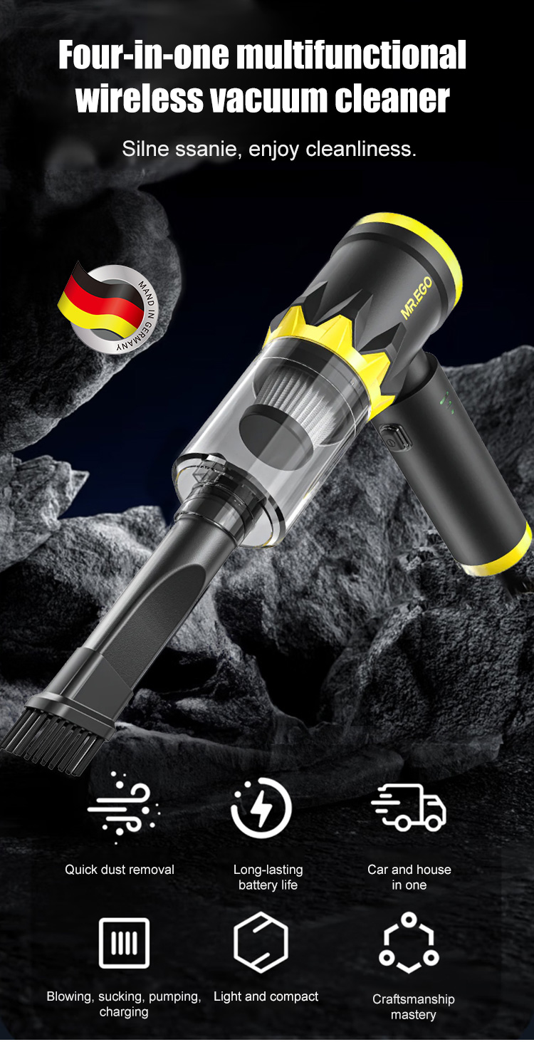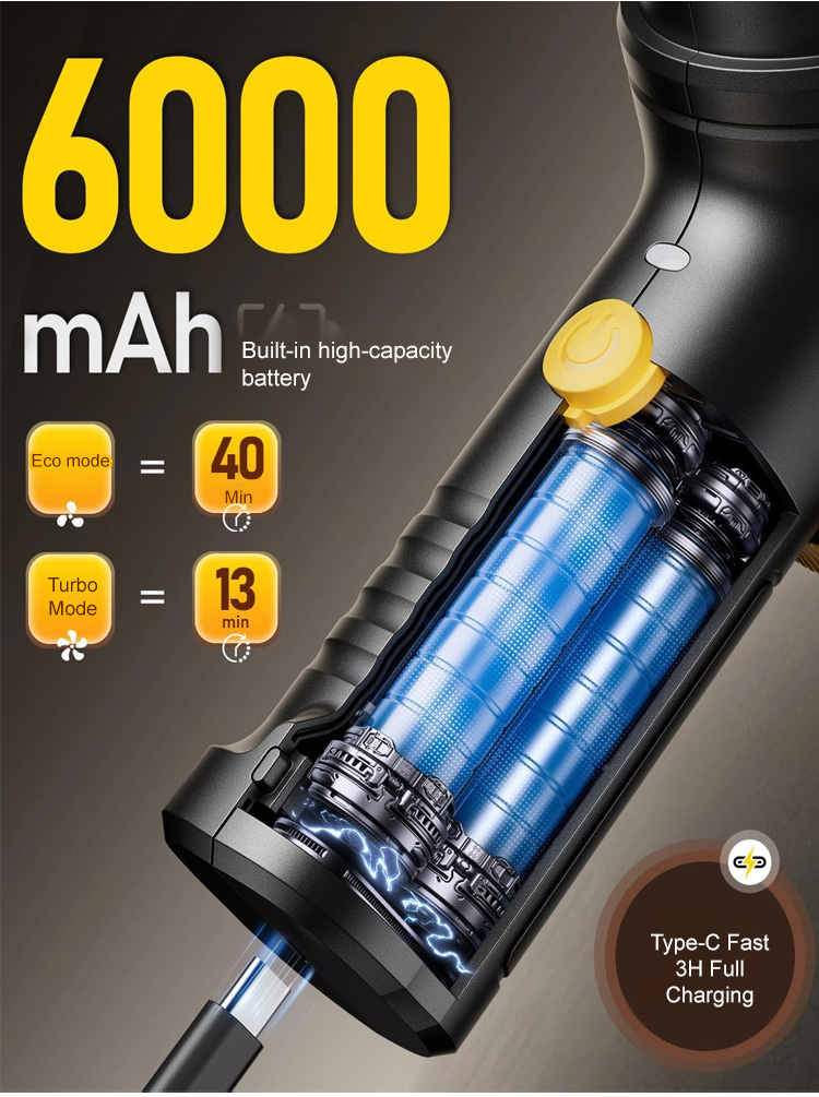 It combines vacuuming, blowing, and exhaust functions in one! Boasting a powerful 45,000 Pa suction, it can clean an entire car in just one minute. ✨ It has an ultra-long battery life, capable of cleaning up to 20 cars on a single charge.