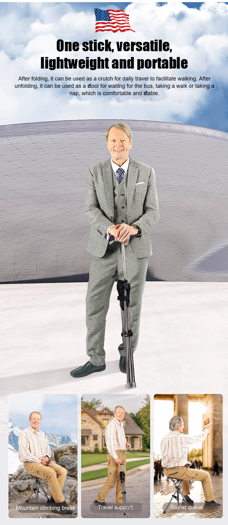 【Free Trial】Outdoor foldable crutch chair for the elderly